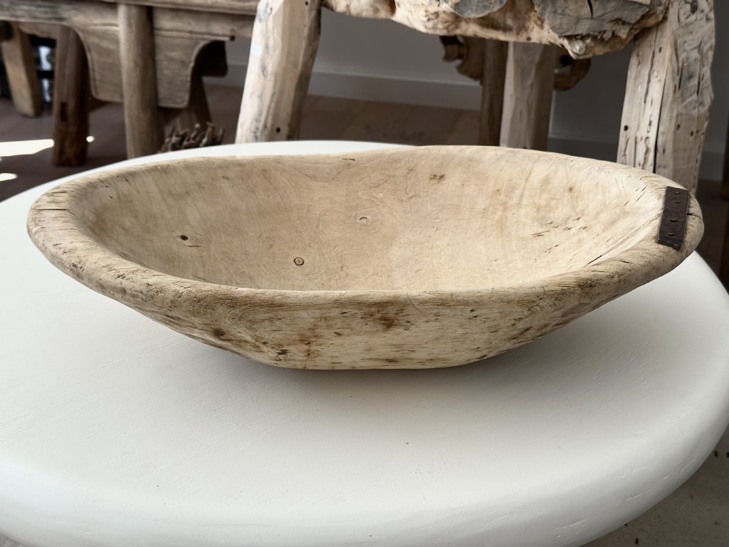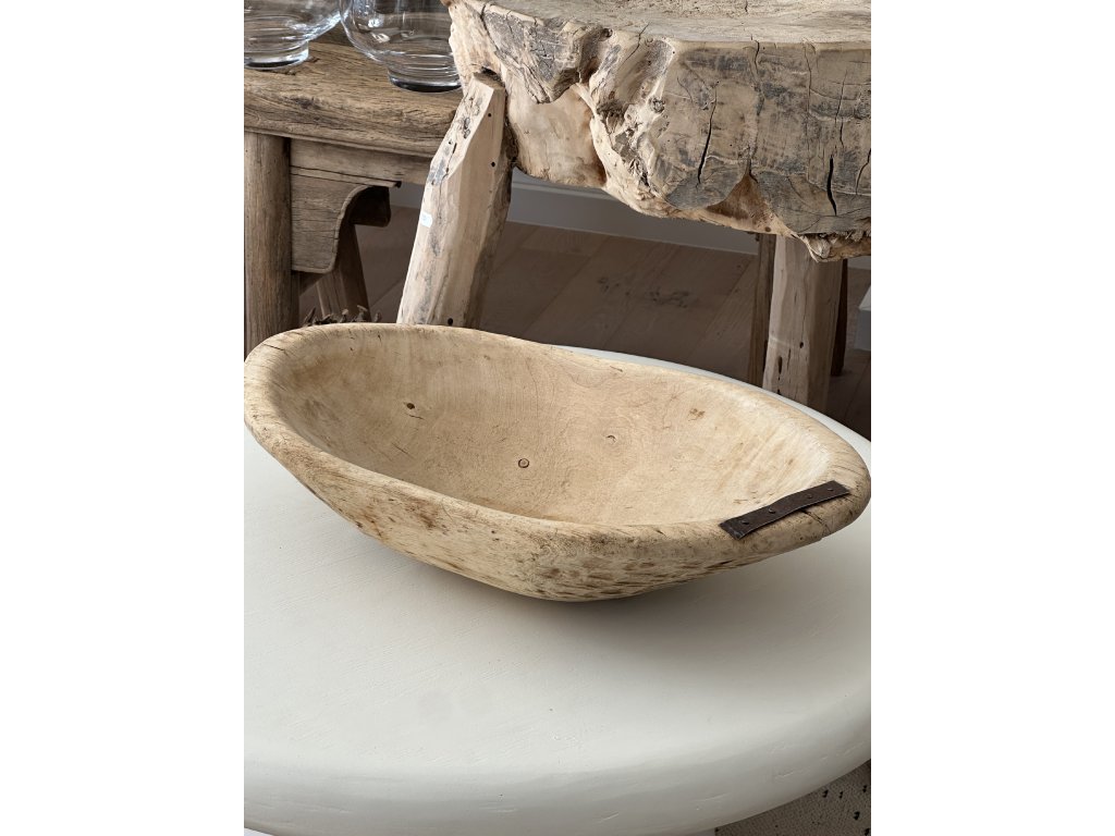 Autentická stará dřevěná mísa s krásnou patinou času je jedinečným dekorativním kouskem do interiéru. Každá mísa byla ručně vyřezána z masivního dřeva, což jí dodává nepravidelný tvar, jemné nedokonalosti a originální charakter.