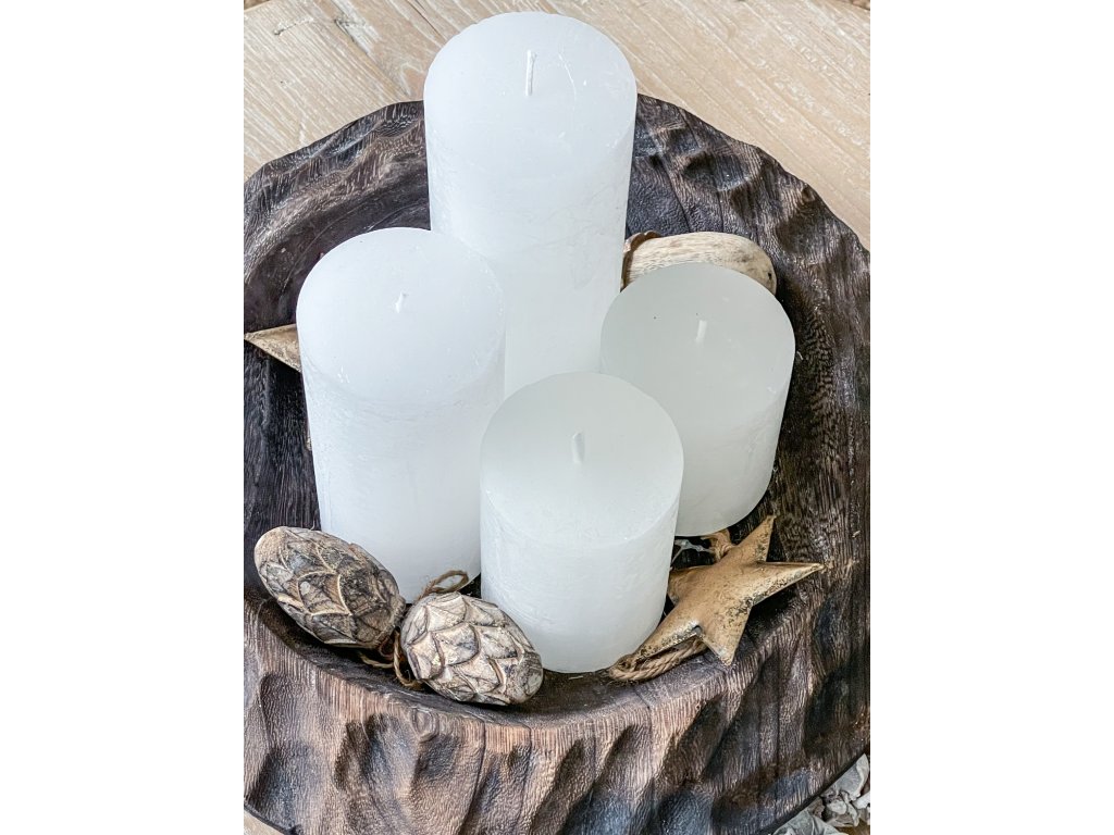 Svíčka v ledově bílé barvě s průměrem 7 cm, různé velikosti.