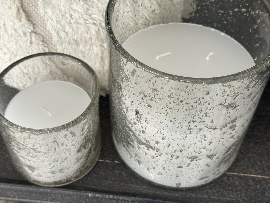 Každý kus je vyroben ručně, proto se mohou jednotlivé skleněné nádoby mírně lišit ve struktuře skla, patině i drobných detailech. Právě tyto jemné nedokonalosti dodávají svíčce její jedinečný charakter.