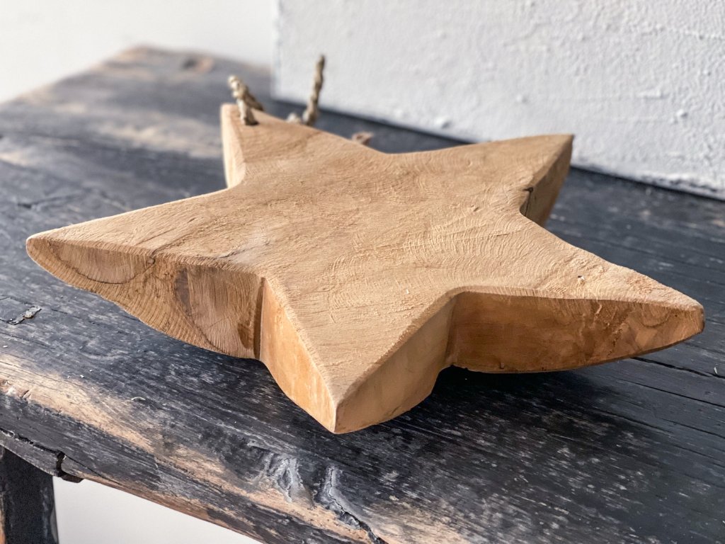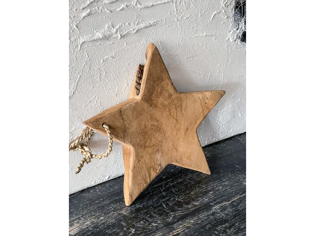 Masivní taková hvězda na zavěšení. Můžete taky použít jako podtác pod svícen, či svíčku, nebo jen tak zapřít k vánoční dekoraci. Odstín, velikost a kresba dřeva se mohou lišit kus od kusu, výběr kusu k dodání je náhodný.
