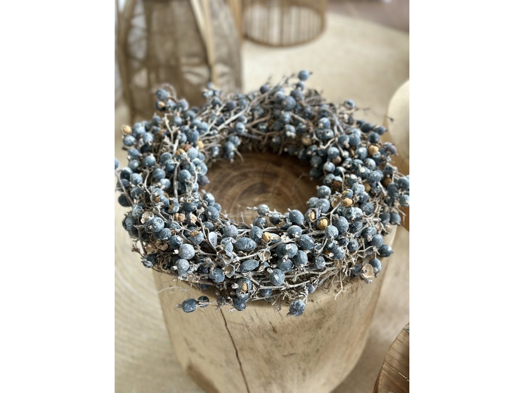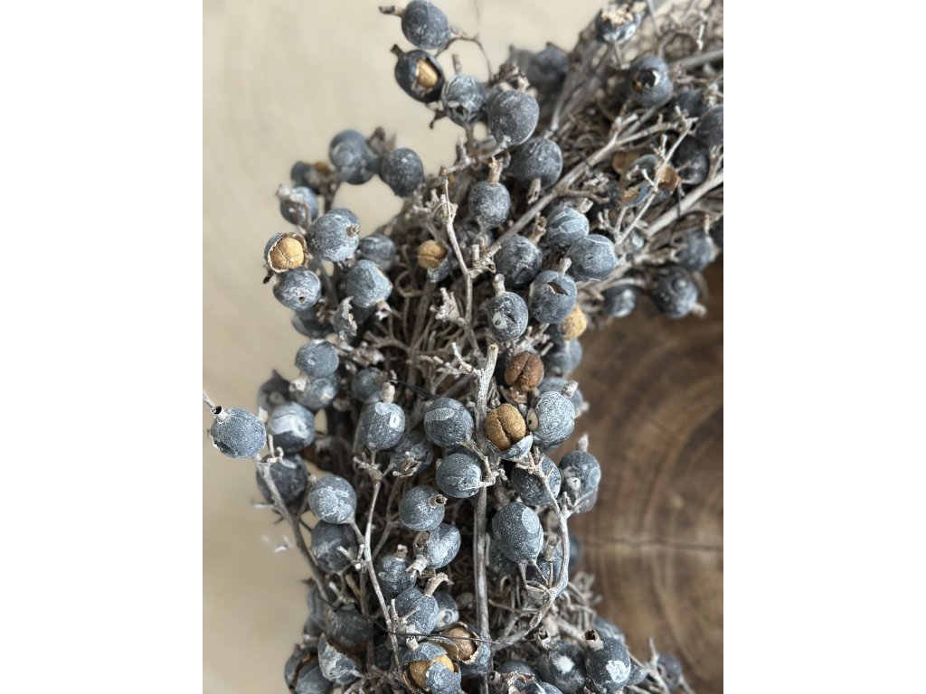 Dekorativní věnec z přírodních větviček a sušených bobulí v jemných šedobílých tónech. Vynikne svou jednoduchostí a elegantní strukturou.