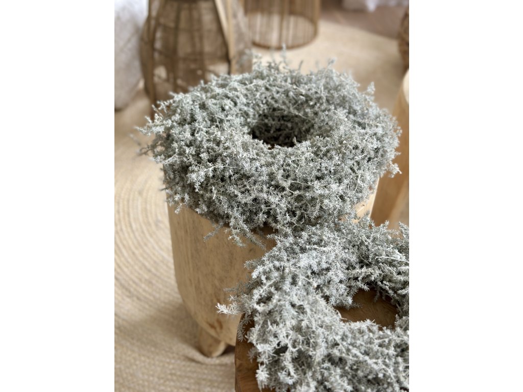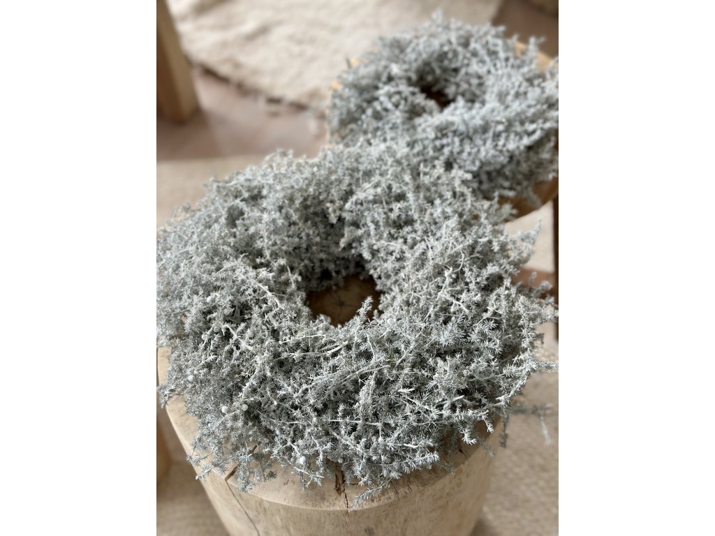 Jemný věnec v bílém zimním provedení, tvořený z drobných větviček. Vynikne svou přirozenou strukturou a jemností. Krásně se hodí jako základ pro další aranžování, ale i samostatně na stůl, dveře či tác pro klidný, přírodní vzhled interiéru.